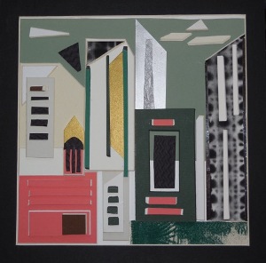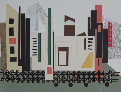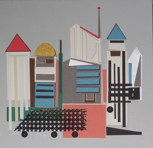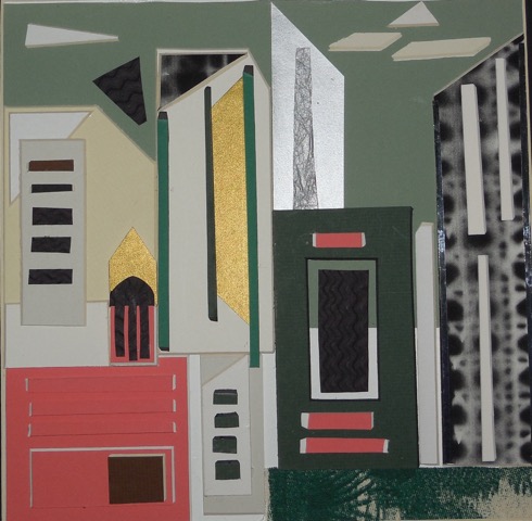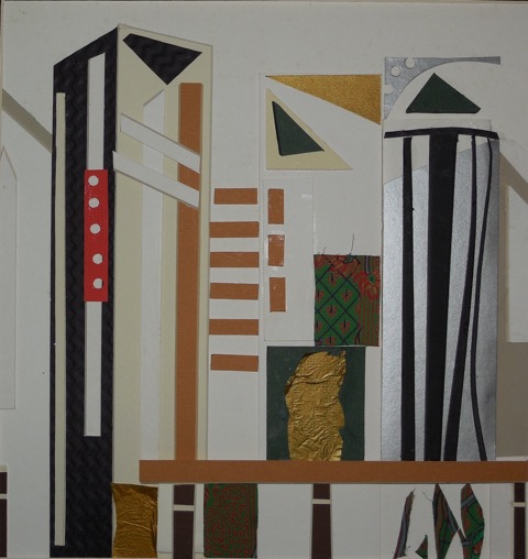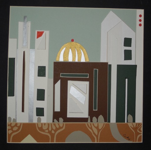City Scape #2 - art board, paper and fabric - 15.5”x 15”- $50