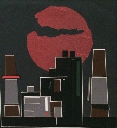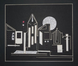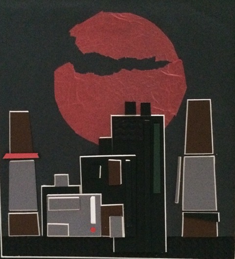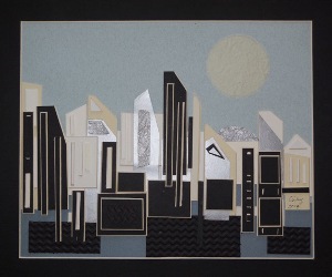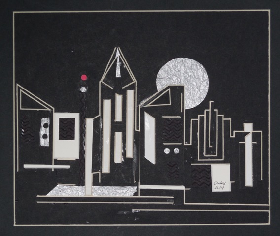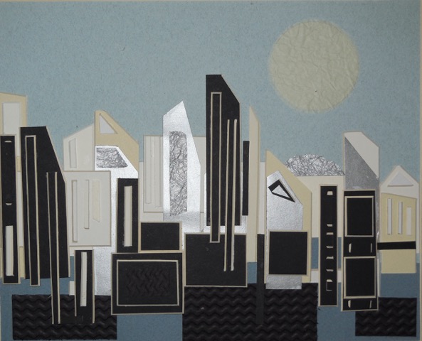 City Scape with Moon - art board and paper - 14”x 12” $50