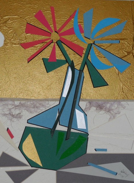 Red and Blue Flowers in a Vase - art board and paper - 12.5”x 16”- $50
