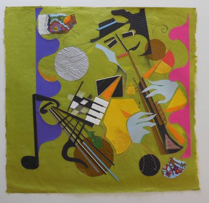 Architectural, musical and natural themes stream through these multi-media and fiber art abstracts, creating works that demonstrate structure and economy in color.