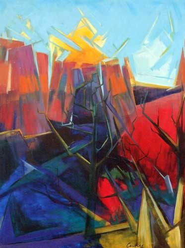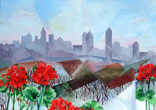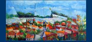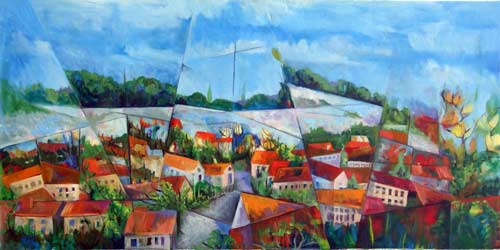 | Splashes of colors and shapes that speak of scenic reminiscences, of spaces and places visited.